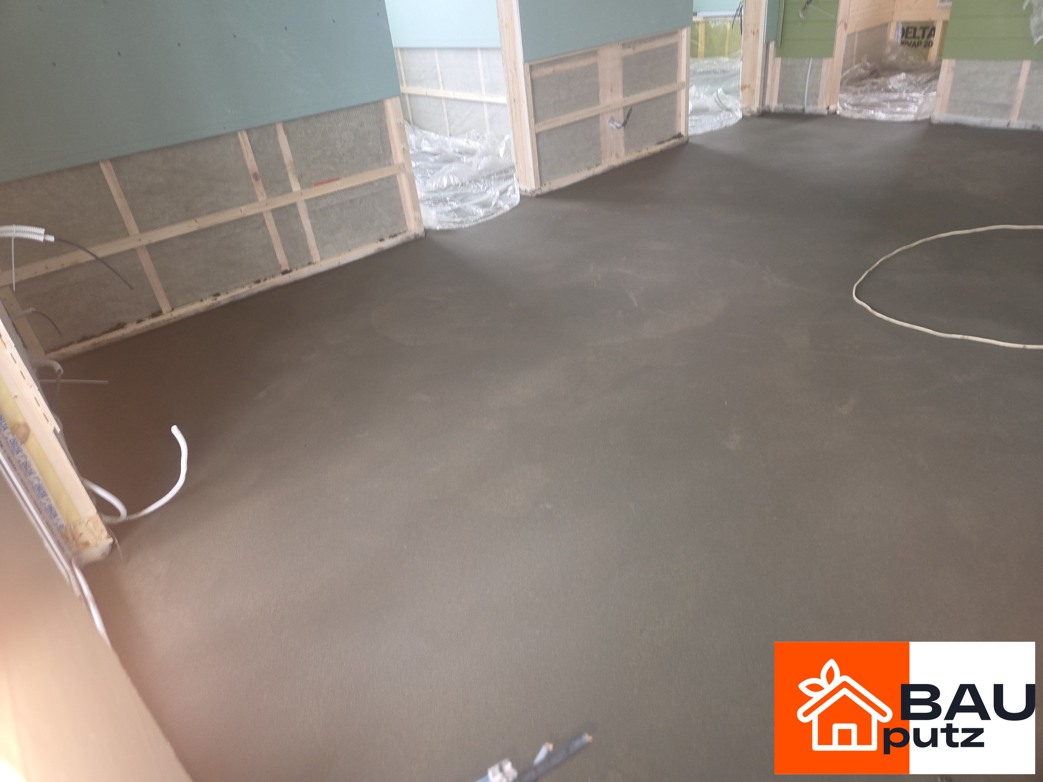 Реализованный проект по полусухой стяжке пола механизированным способом по адресу: Московская область, городской округ Домодедово, деревня Голубино, КП Новое Голубино, 52, Площадь: 84 м², Слой: 70 см.