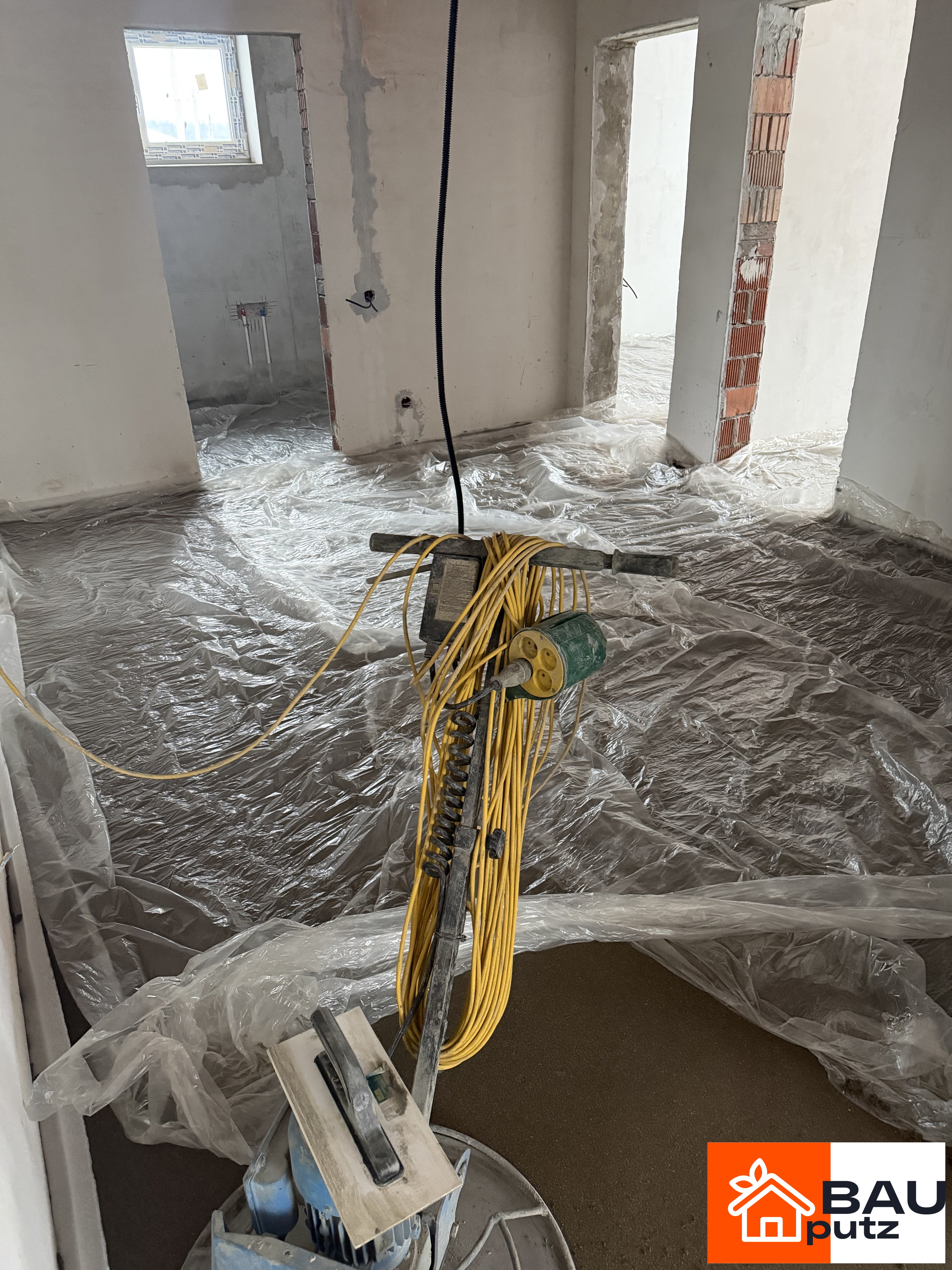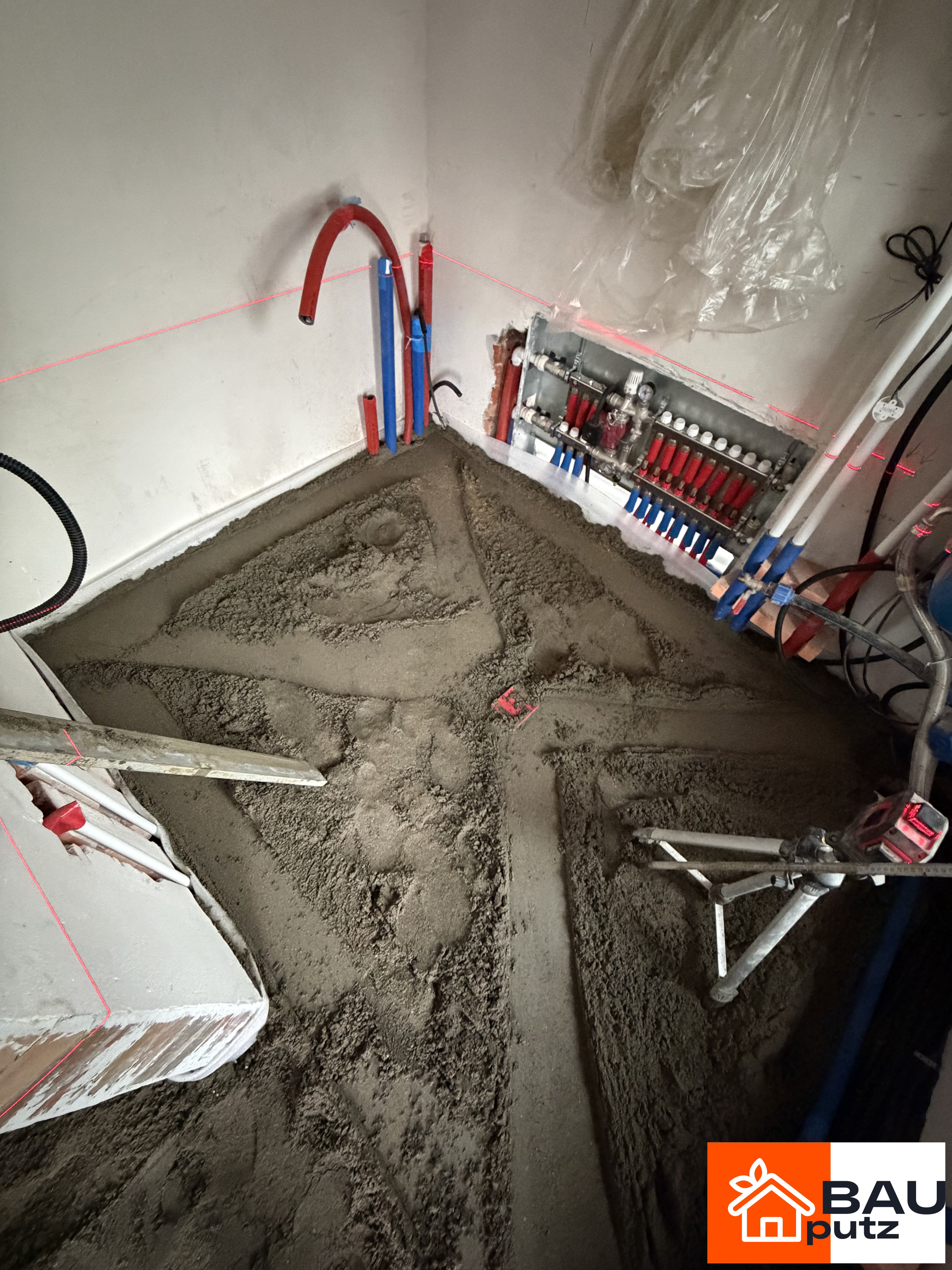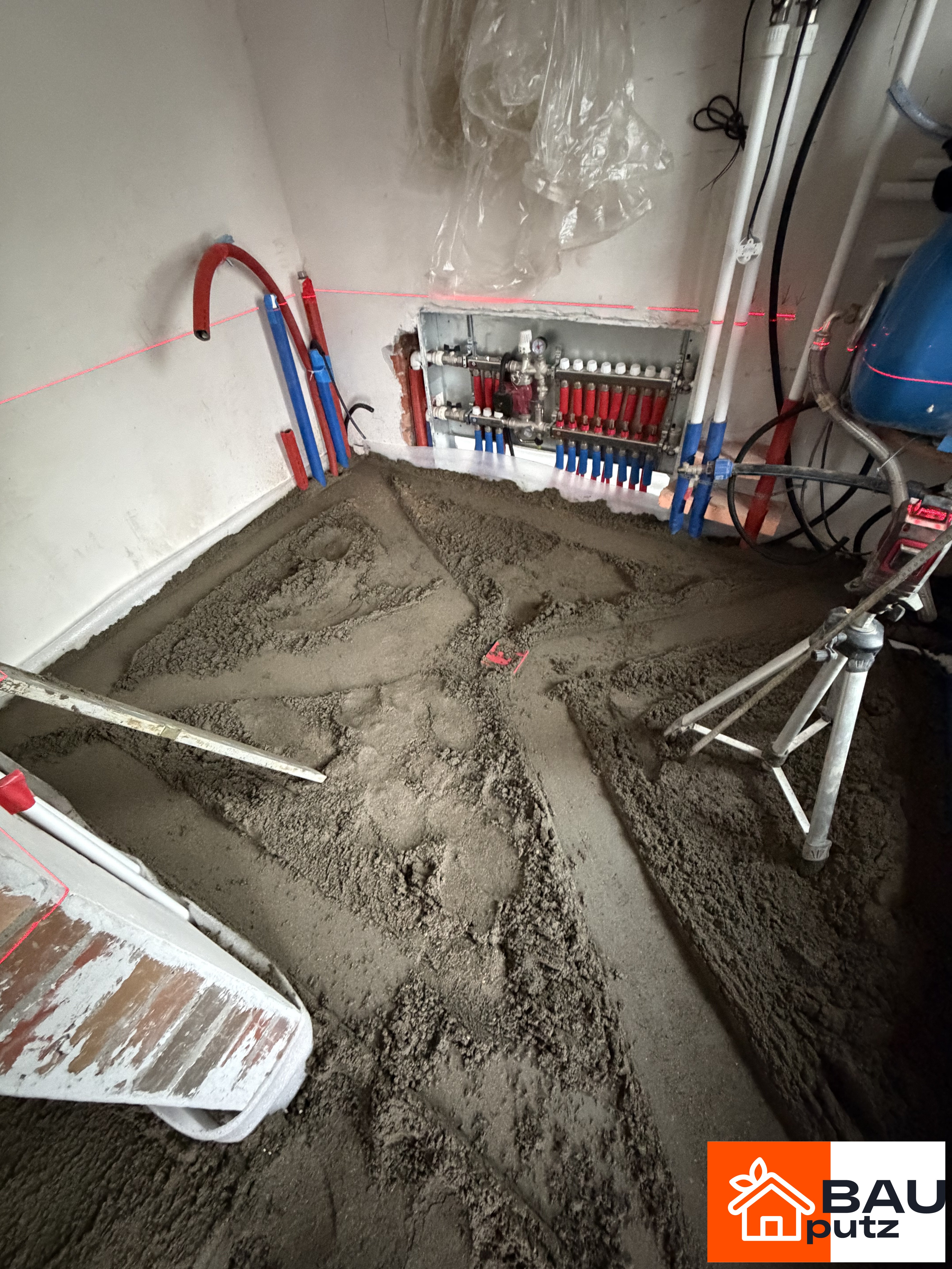 Реализованный проект по полусухой стяжке пола механизированным способом по адресу: Московская область, Рузский муниципальный округ, посёлок городского типа Тучково, 3-я Новопетровская улица, 11, Площадь: 115 м², Слой: 115 см.
